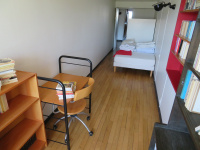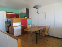 UNITE D'HABITATION LE CORBUSIER, BD Michelet 13008, au 5ème étage avec ascenseur , bénéficiant d'une vue exceptionnellle sur mer et colline , duplex descendant de 93 m2 , avec, au 1er niveaux le coin cuisine ( equipé de plaques , hotte et frigidaire congélateur ) qui a conservé ses équipements d'origine et la salle à manger surplombant le séjour , au niveaux inférieur: un vaste séjour face à la mer et un balcon , deux chambres ( avec balcon) cabine de douche , salle de bain , placards de rangements. Chauffage collectif et TOM prévus dans les charges .En espace commun : toit terrasse , bassin.